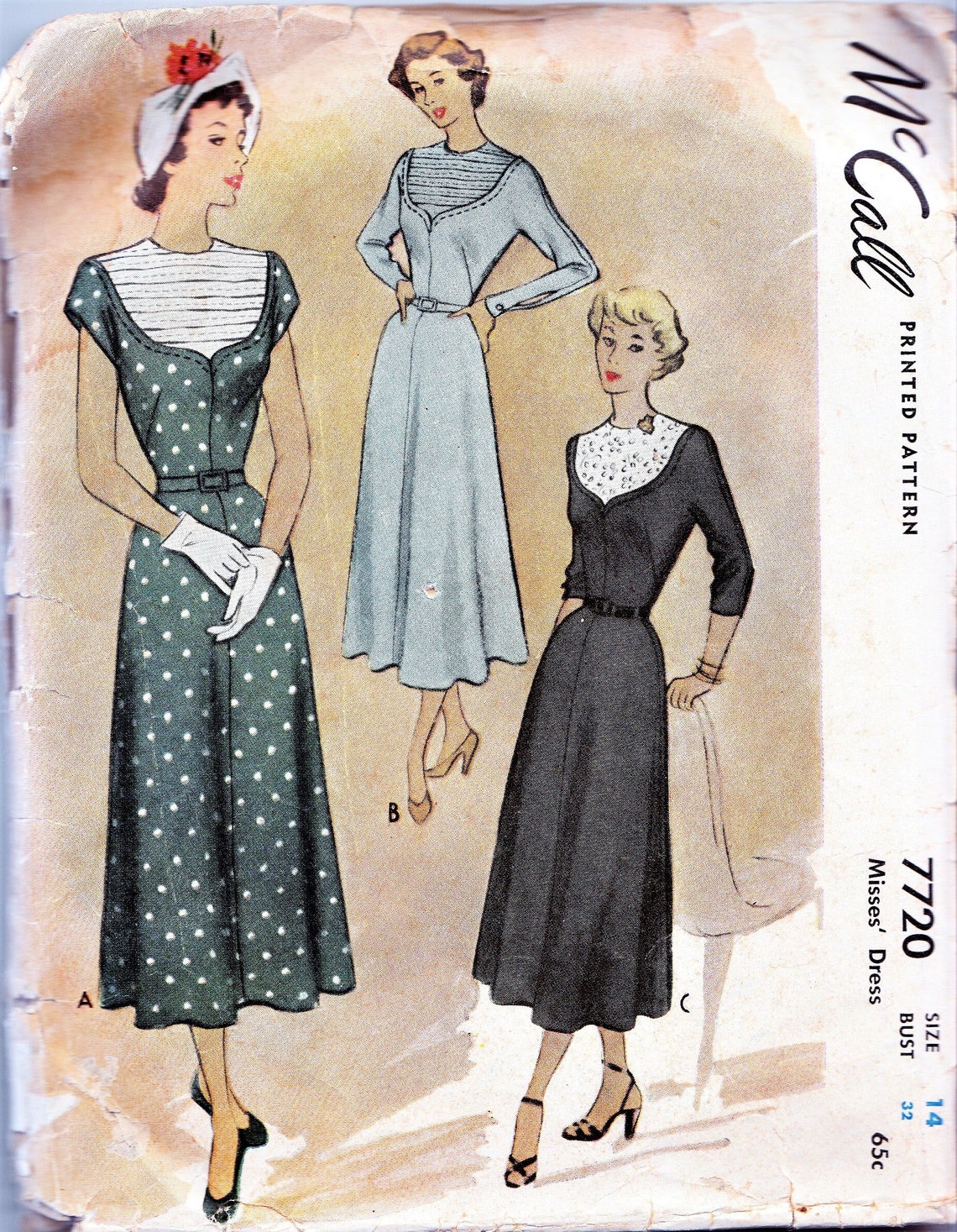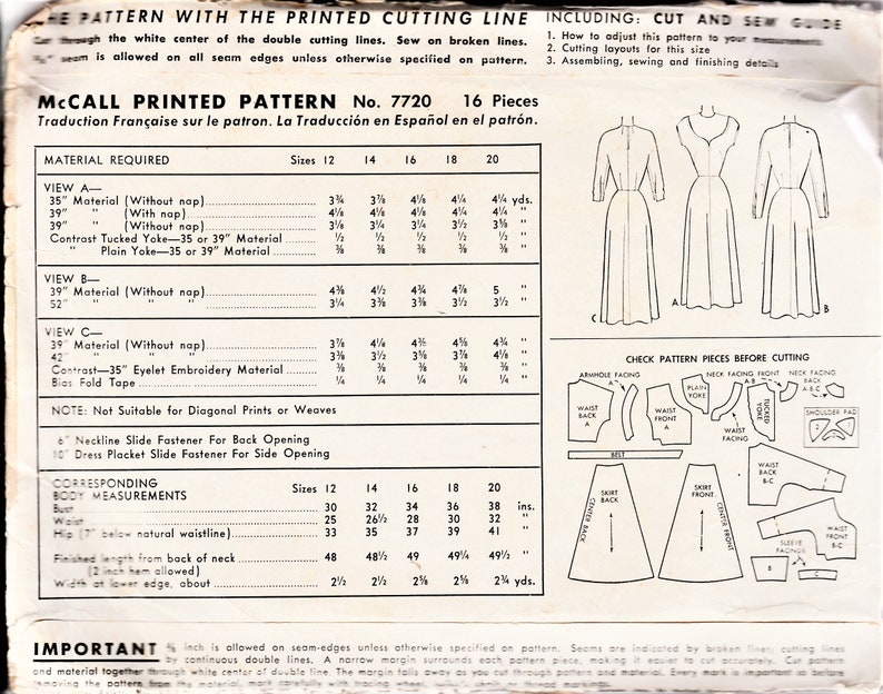 1940s Dress Sewing Pattern, Rare 40s, 50s Fashion Pattern, Mccall 7720 ...