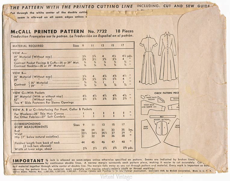40s Shirt Dress Pattern, McCall 7732, Vintage Sewing Patterns