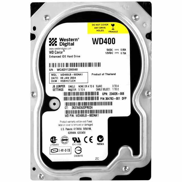 WESTERN DIGITAL, MODEL: WD400BB-23FJA0, 40GB WD400 Enhanced IDE Hard ...