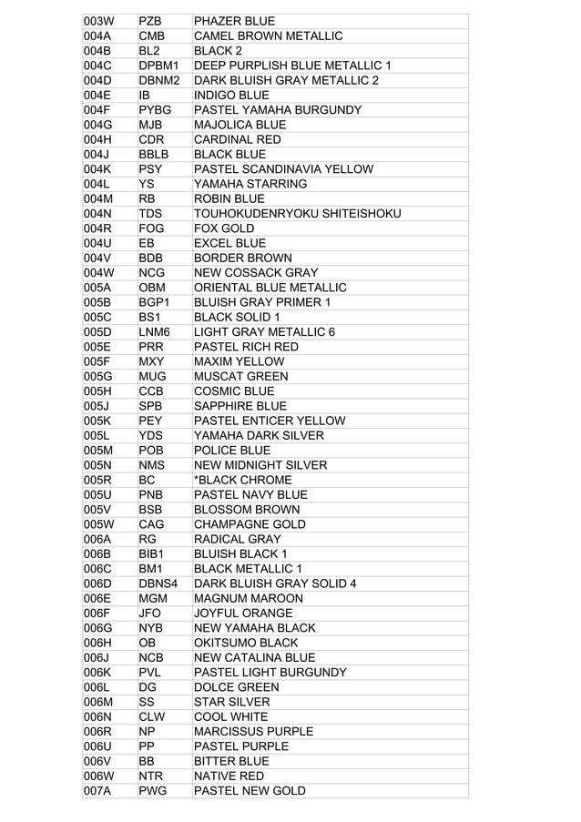 Yamaha Color Codes PDF | PDF | Grey | Magenta