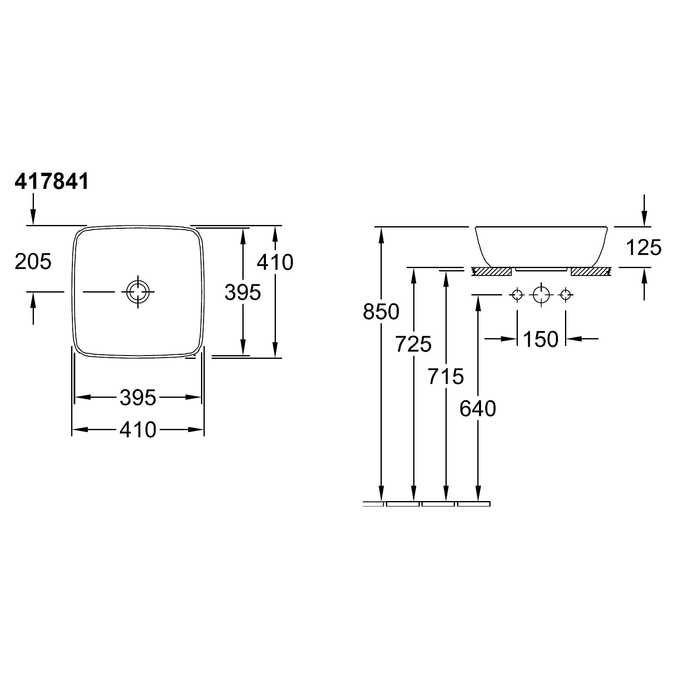 Villeroy & Boch Artis Aufsatzwaschtisch 417841R1 41 x 41 cm, ohne ...