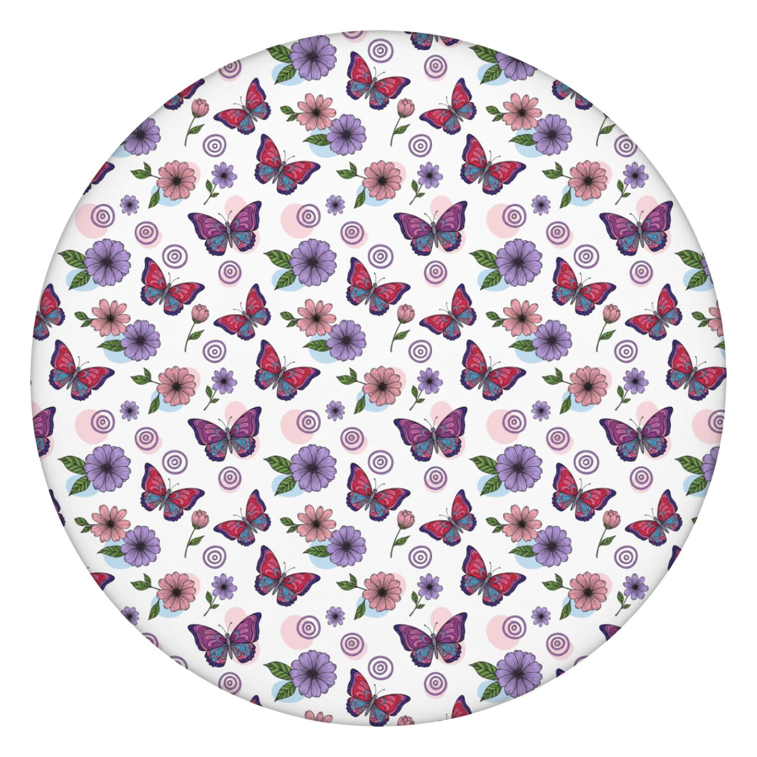 Butterfly Floral Swirl White Pattern Round Elastic Tablecloth, 36-44 ...