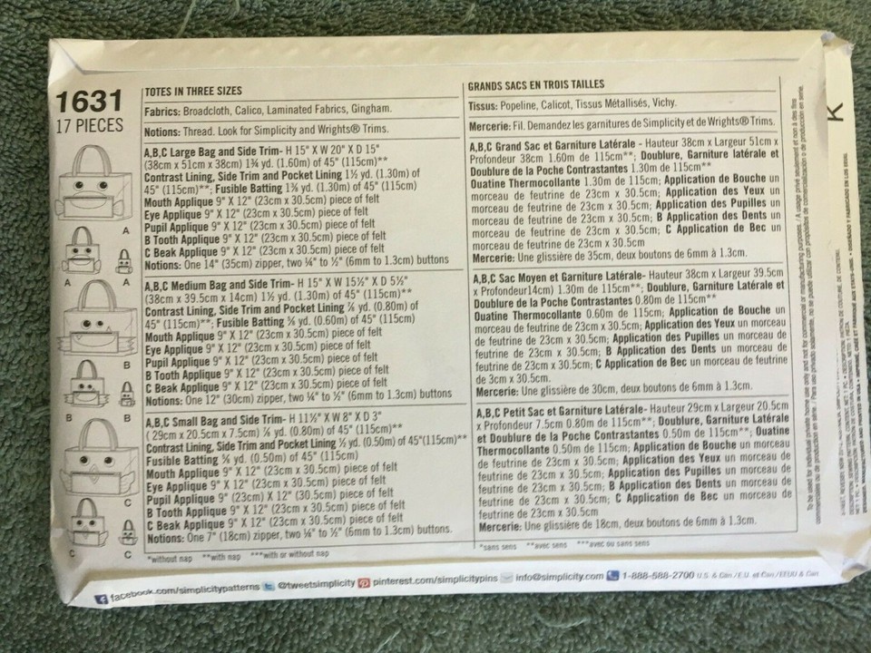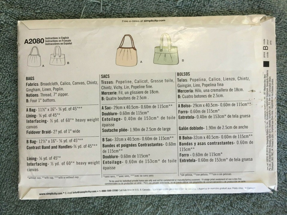 Sewing Pattern, Simplicity Pattern 8664, Handbags in 4 Styles, Uncut ...