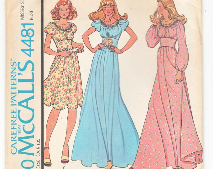 McCall's 4481 Boho Maxi Dress Vintage 70s Sewing Pattern
