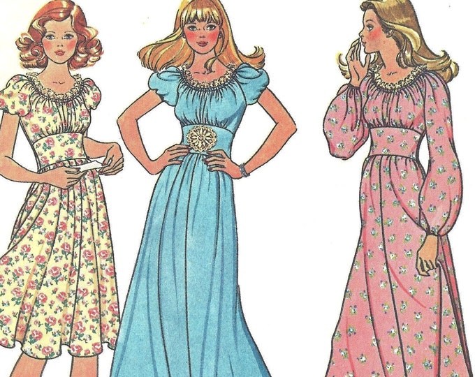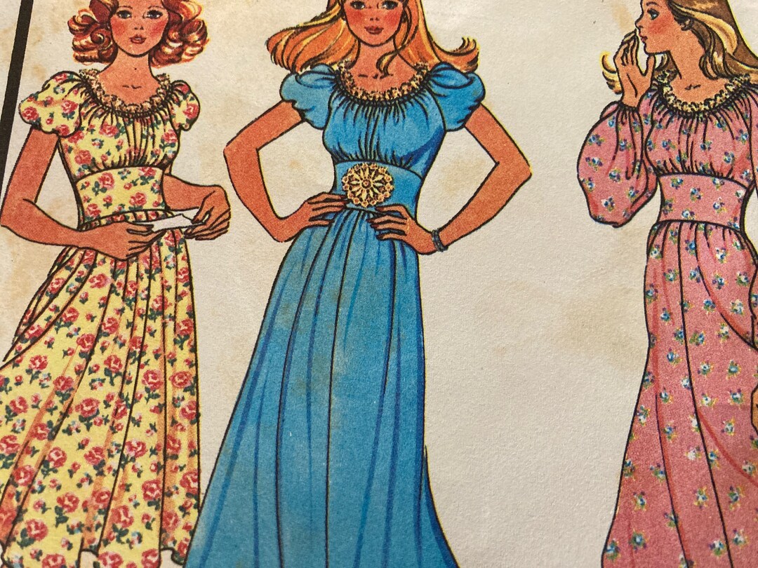 Vintage 1970's Dress Pattern With High Ruffled Collar and Puff Sleeves ...