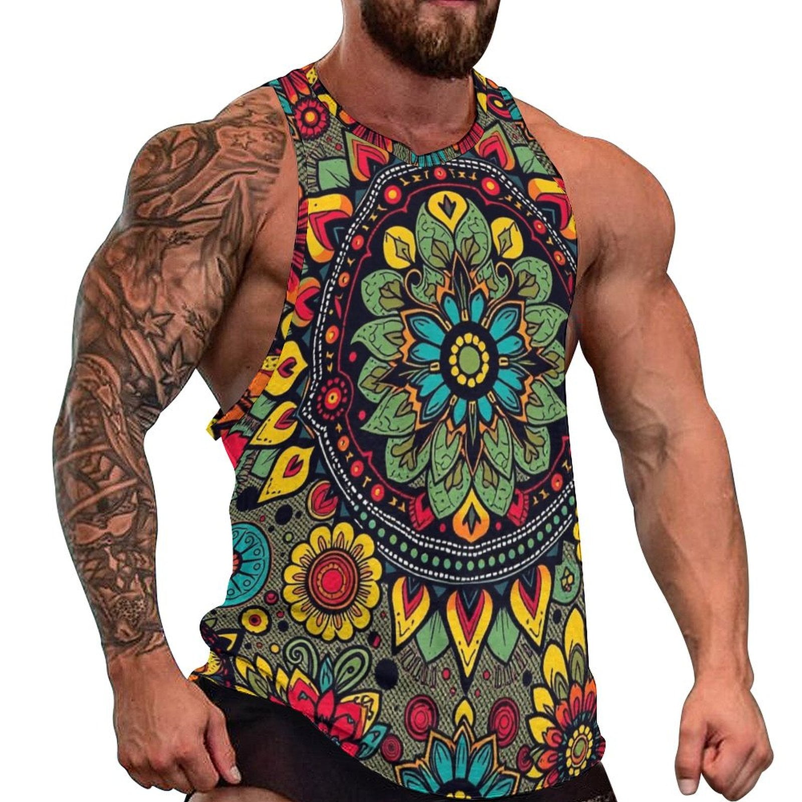 Bohemian Pattern Men Tops Round Collar Graphic Printed Clothes Outdoor ...