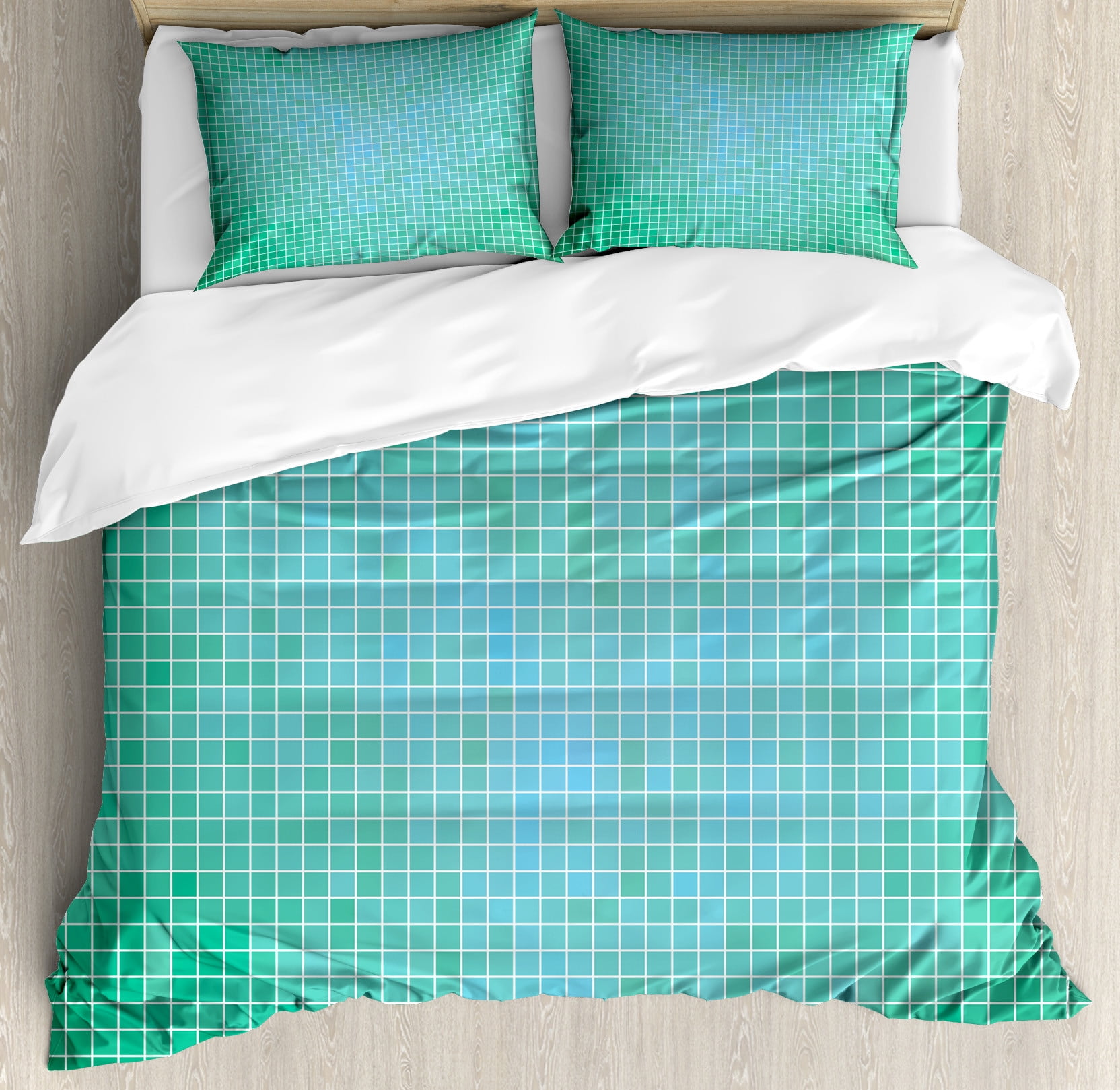 Teal Duvet Cover Set, Square Pixel Like Mosaic Pattern Simplistic ...