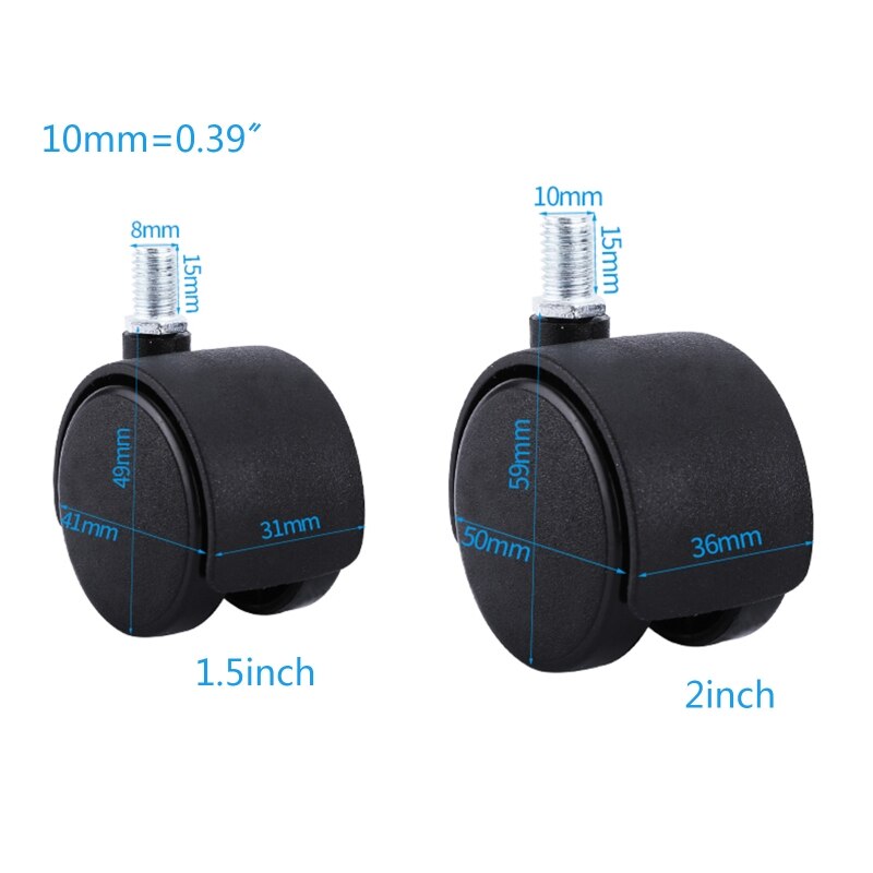 4 Stks/set 1.5/2in 8/10Mm Nylon Wielen Stille Univ... – Vicedeal