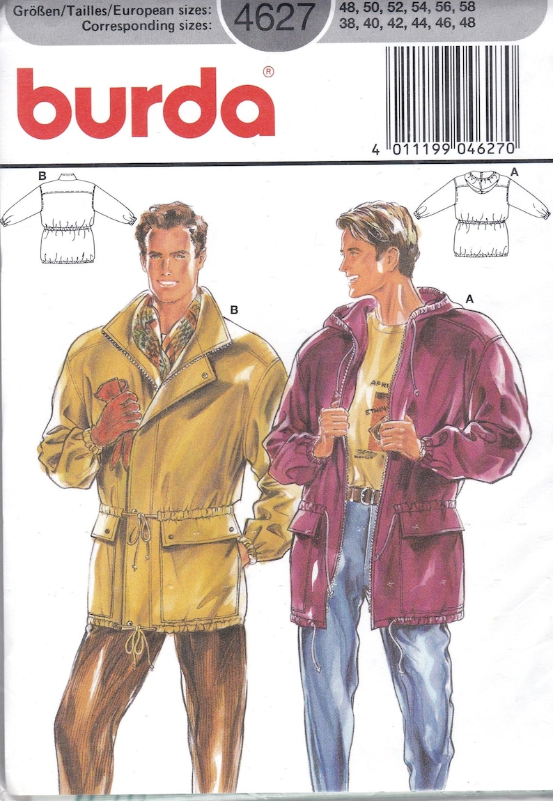 Sewing Pattern Burda 4627 Men's Jackets Drawstring Waist W/collar or ...