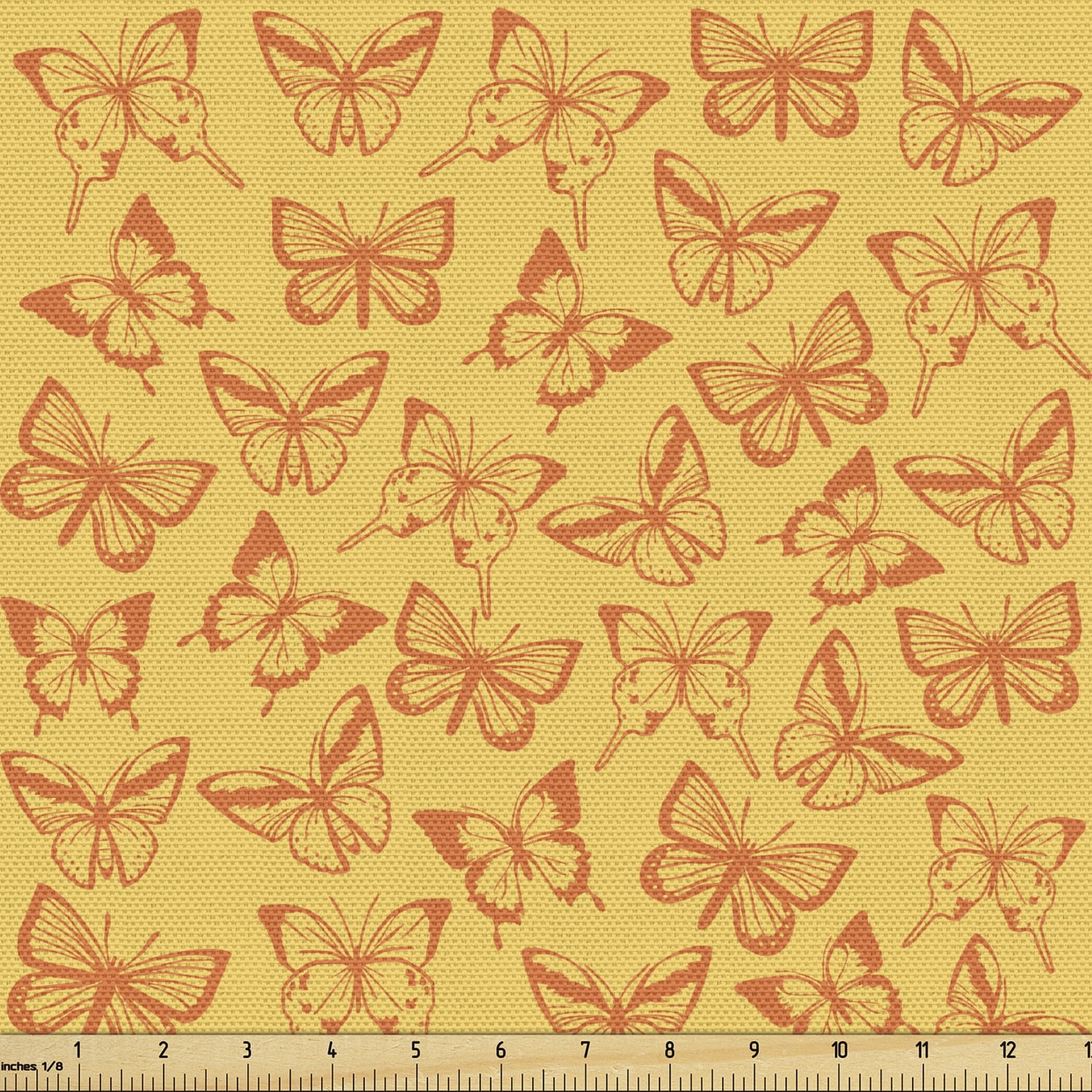 Retro Fabric by the Yard, Repetitive Pattern Butterflies Sketch ...