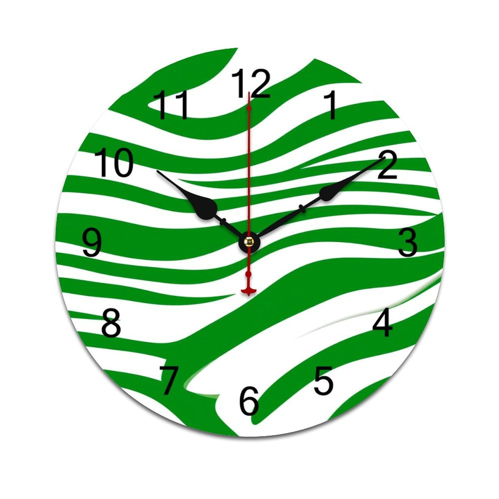 Green White Stripes Pattern Silent Wall Clock Movement Battery Clock ...