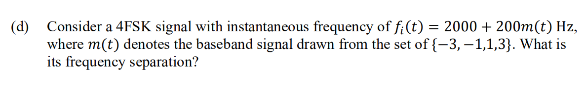 Solved = (d) Consider a 4FSK signal with instantaneous | Chegg.com
