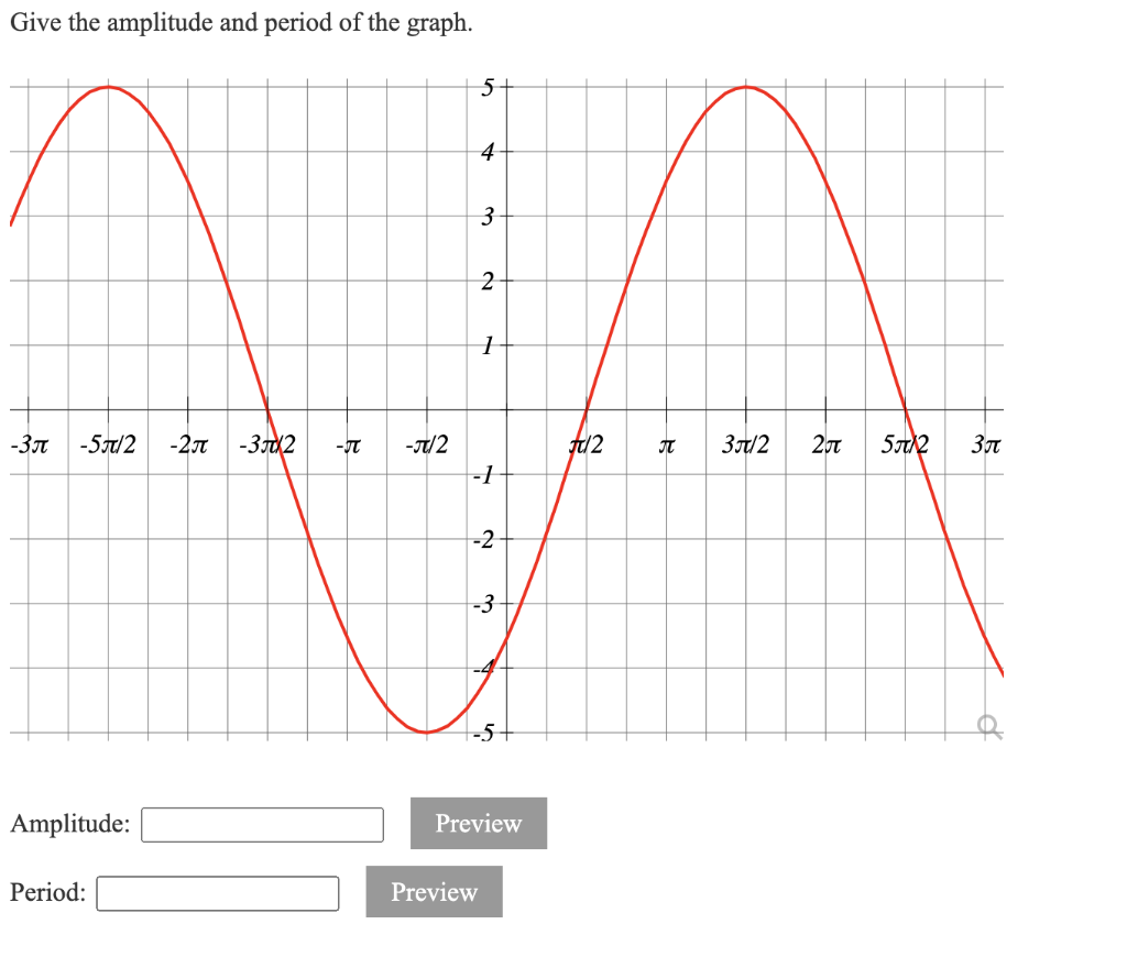 SOLVED: 'Identify the values from the graph. Amplitude: Period: 4pi ...