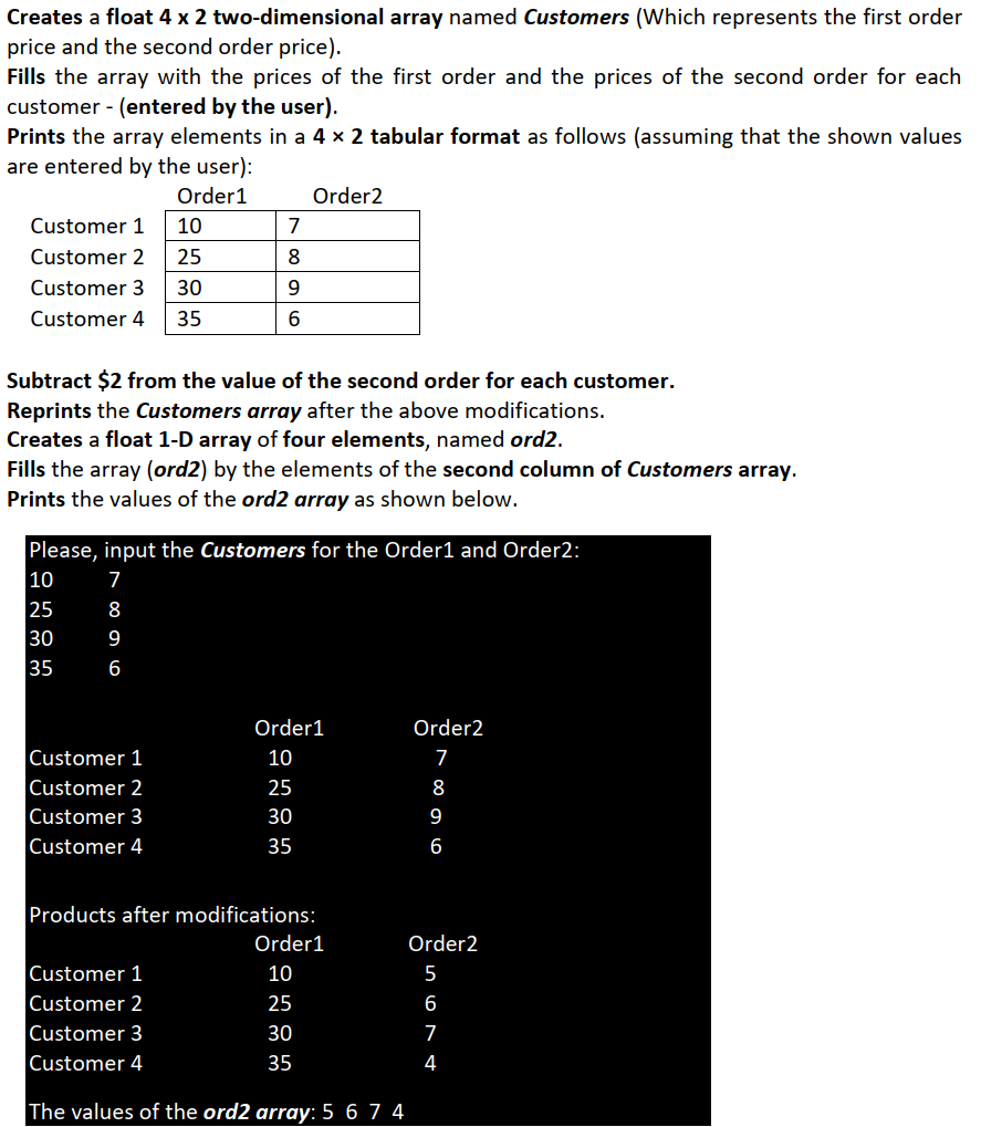 Solved Creates a float 4x2 two-dimensional array named | Chegg.com