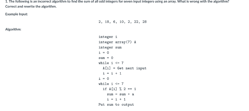 Solved 2,18,6,10,2,22,28 integer i integer array (7) A | Chegg.com