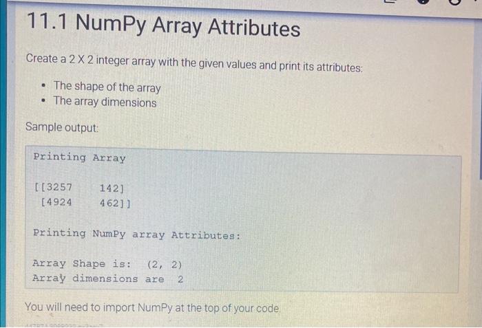VL2021220502268 AST01 1 .pdf - Activity - 1 NUMPY 1. Create a 4X2 ...