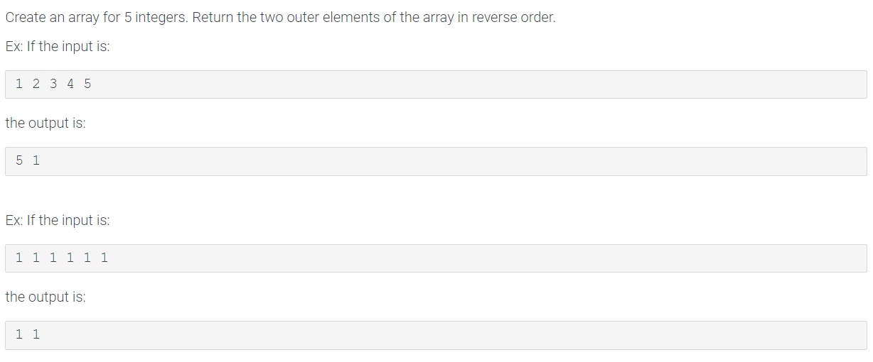 Solved Create an array for 5 integers. Return the two outer | Chegg.com
