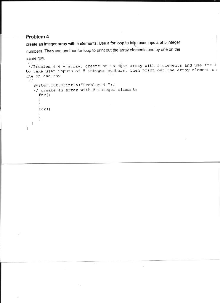 Solved Problem 4 create an integer array with 5 elements. | Chegg.com