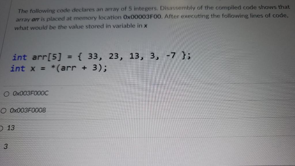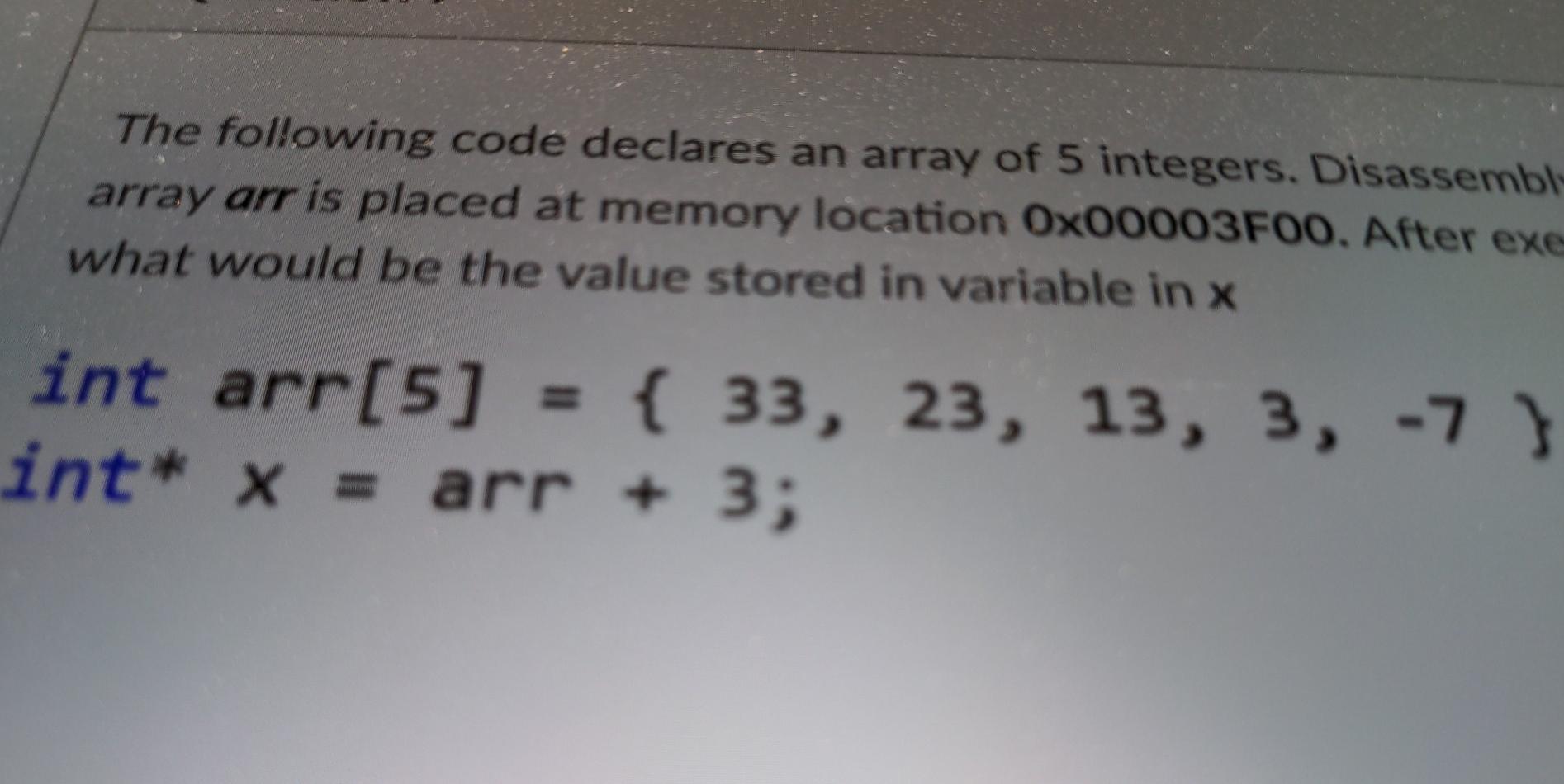 Solved The following code declares an array of 5 integers. | Chegg.com