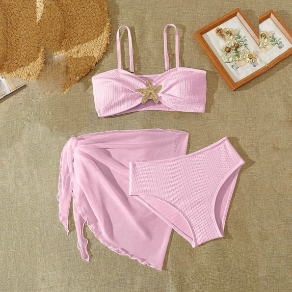 BRGZLK Girls 3 Piece Swimsuits Summer Cute Solid Color Shell Decoration ...