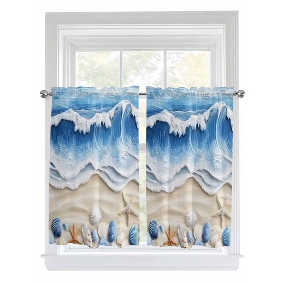 Coastal Blue Kitchen Curtains 54 Inch Length, Starfish Beach Ocean ...