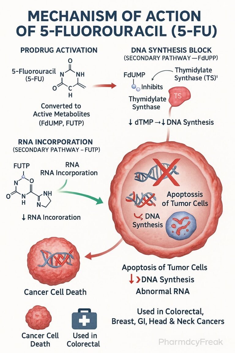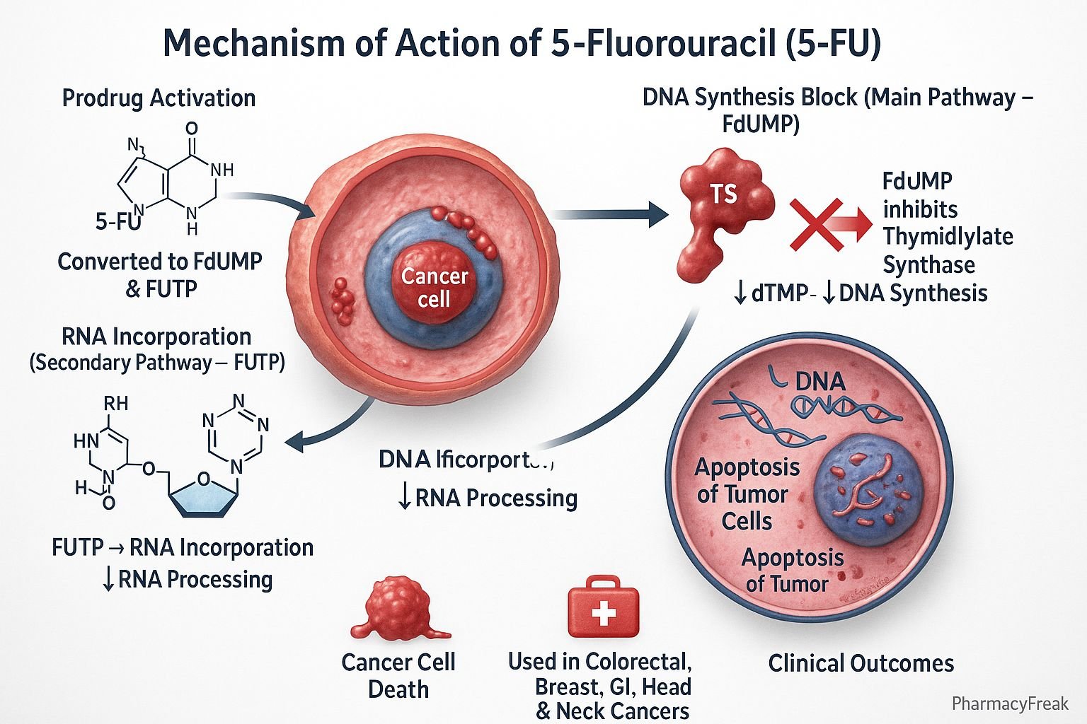 5-Fluorouracil mechanism of action. The 5-fluorouracil structure is ...