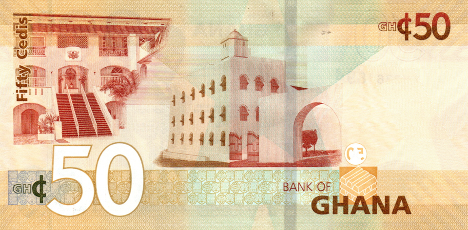 Accra, Ghana. Ghanaian Currency Banknote. 50 Cedis, back Stock Photo ...