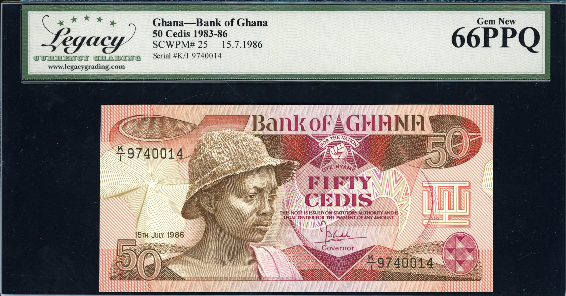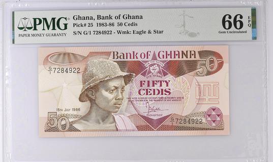 Ghana 1986 50 Cedis Bank of Ghana Note SCWPM-25 Legacy Gem New 66 PPQ ...