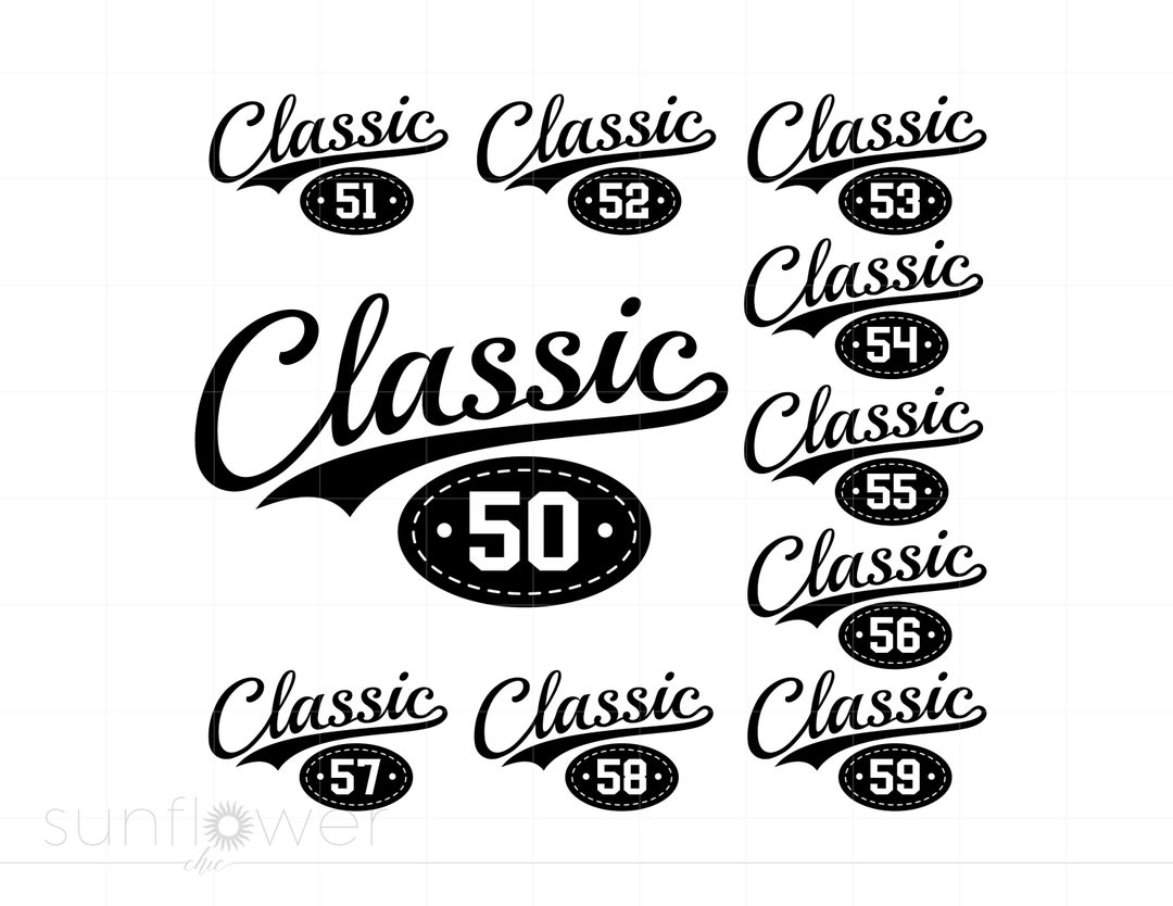 Classic 50's SVG, Athletic Script Classic 50-59 Design, 50th Birthday ...