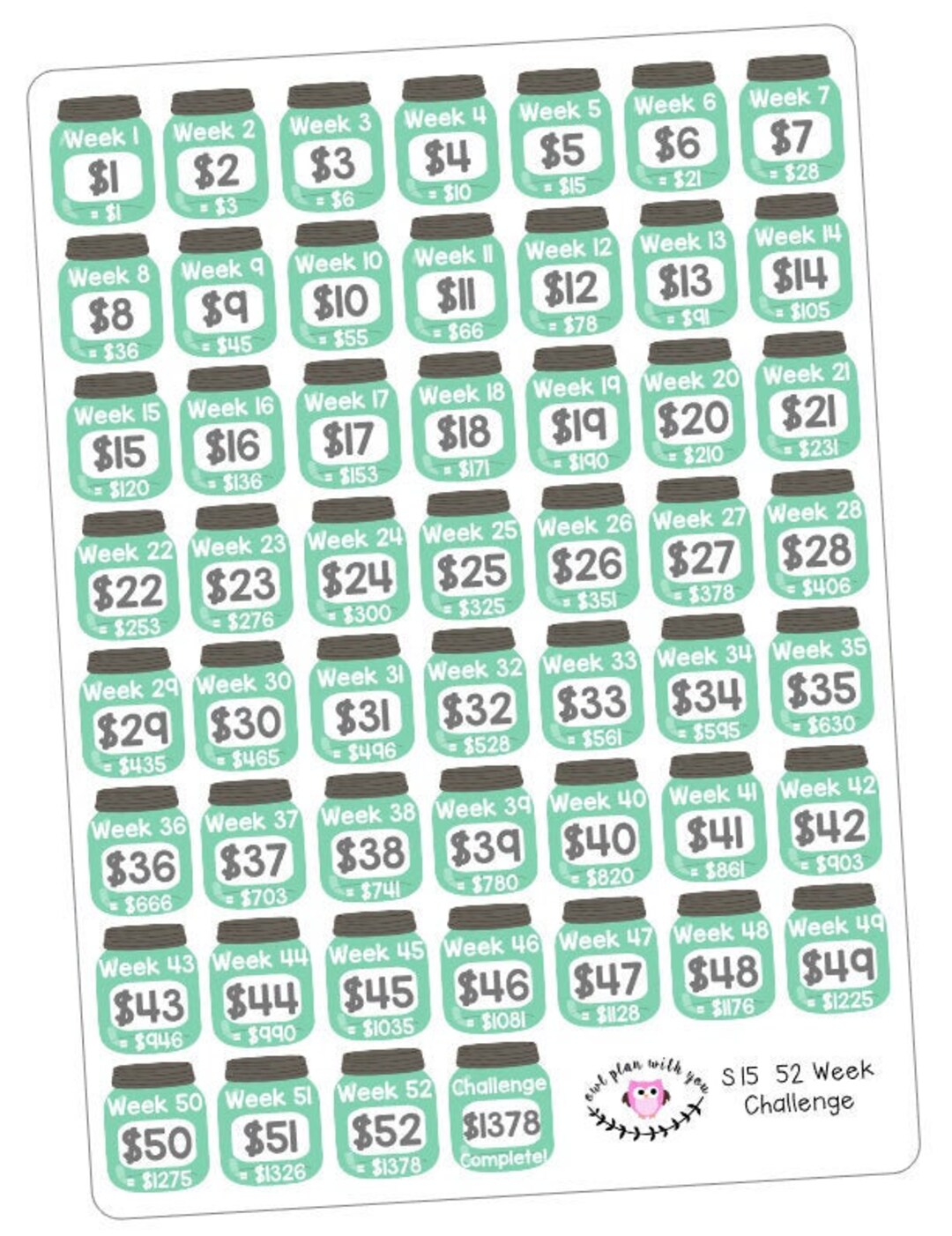 S15 || 52 Week Savings Challenge Stickers - Etsy