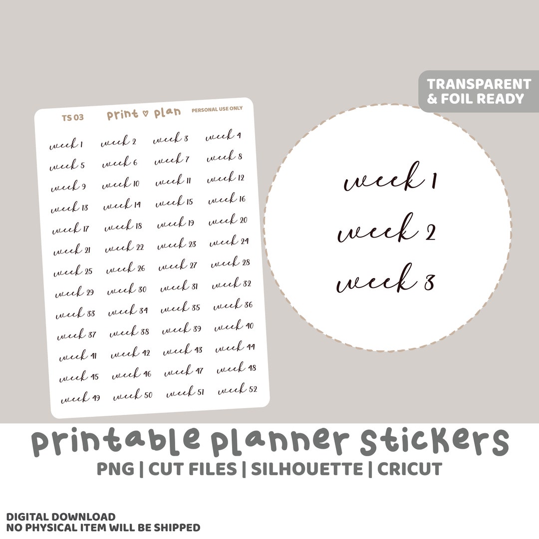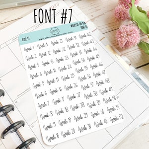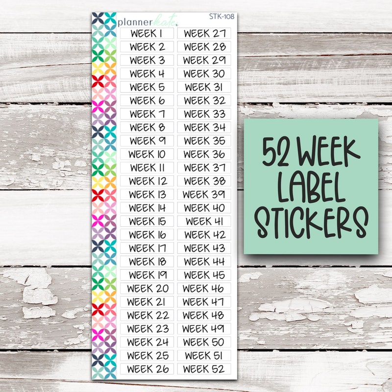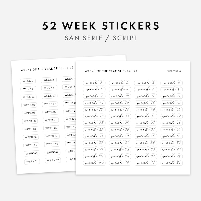 Week 1-52 Script Stickers, Weekly Label Stickers, Planner Stickers, Mo ...