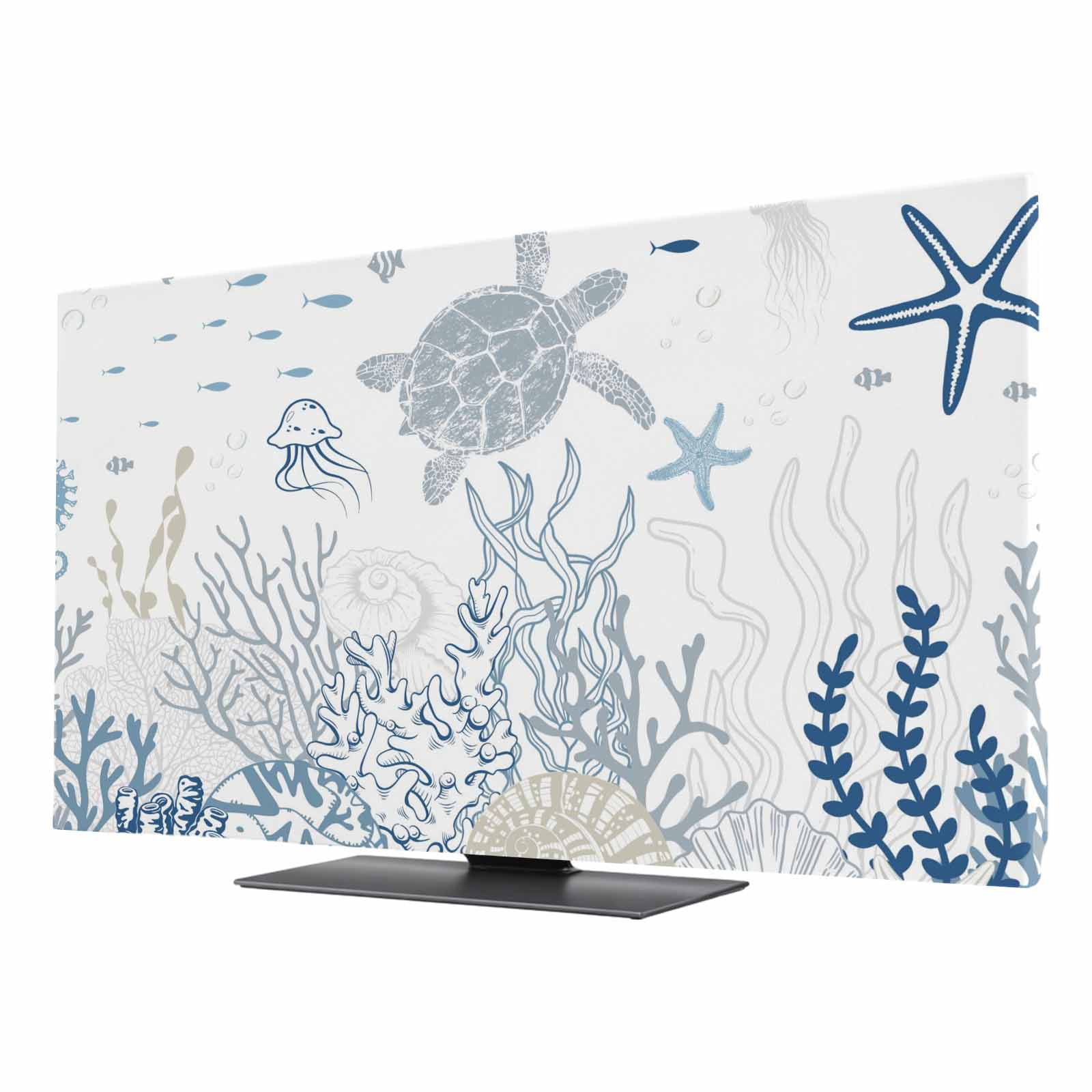 Blue Coastal TV Cover for 55 Inch Screen,Stretch Fabric Dustproof TV ...