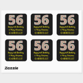 Black, Faux Gold 56th Birthday + Custom Name Square Sticker | Zazzle
