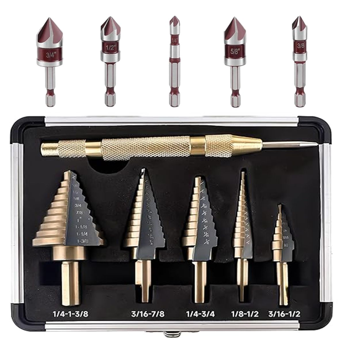 5Pack Step Drill Bit & 5Pack Countersink Drill Bit Set 50 Sizes for ...