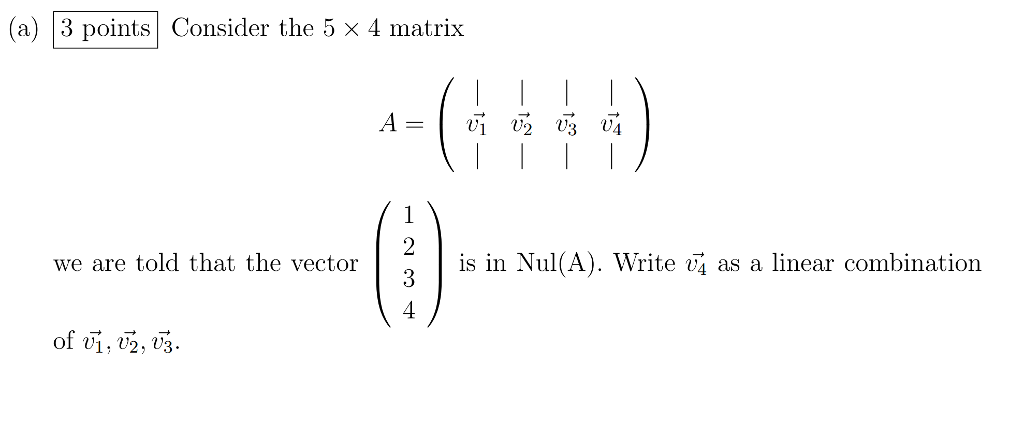 Solved (a) 3 points Consider the 5 x 4 matrix we are told | Chegg.com