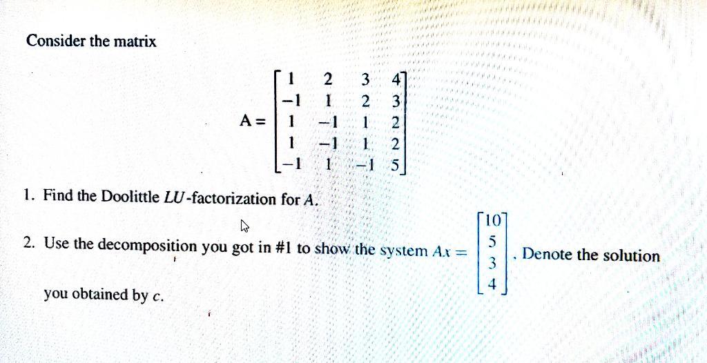 Solved Given the 5x4 matrix below, find the Doolittle | Chegg.com