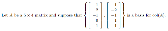 Solved 2 Let A be a 5 x 4 matrix and suppose that is a basis | Chegg.com