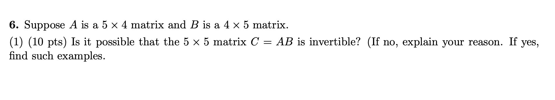 Solved 6. Suppose A is a 5 x 4 matrix and B is a 4 x 5 | Chegg.com