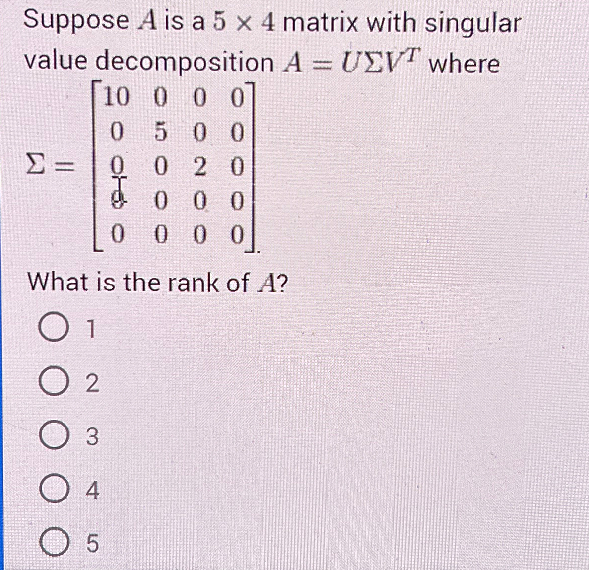 Solved Suppose A is a 5×4 matrix with singular value | Chegg.com