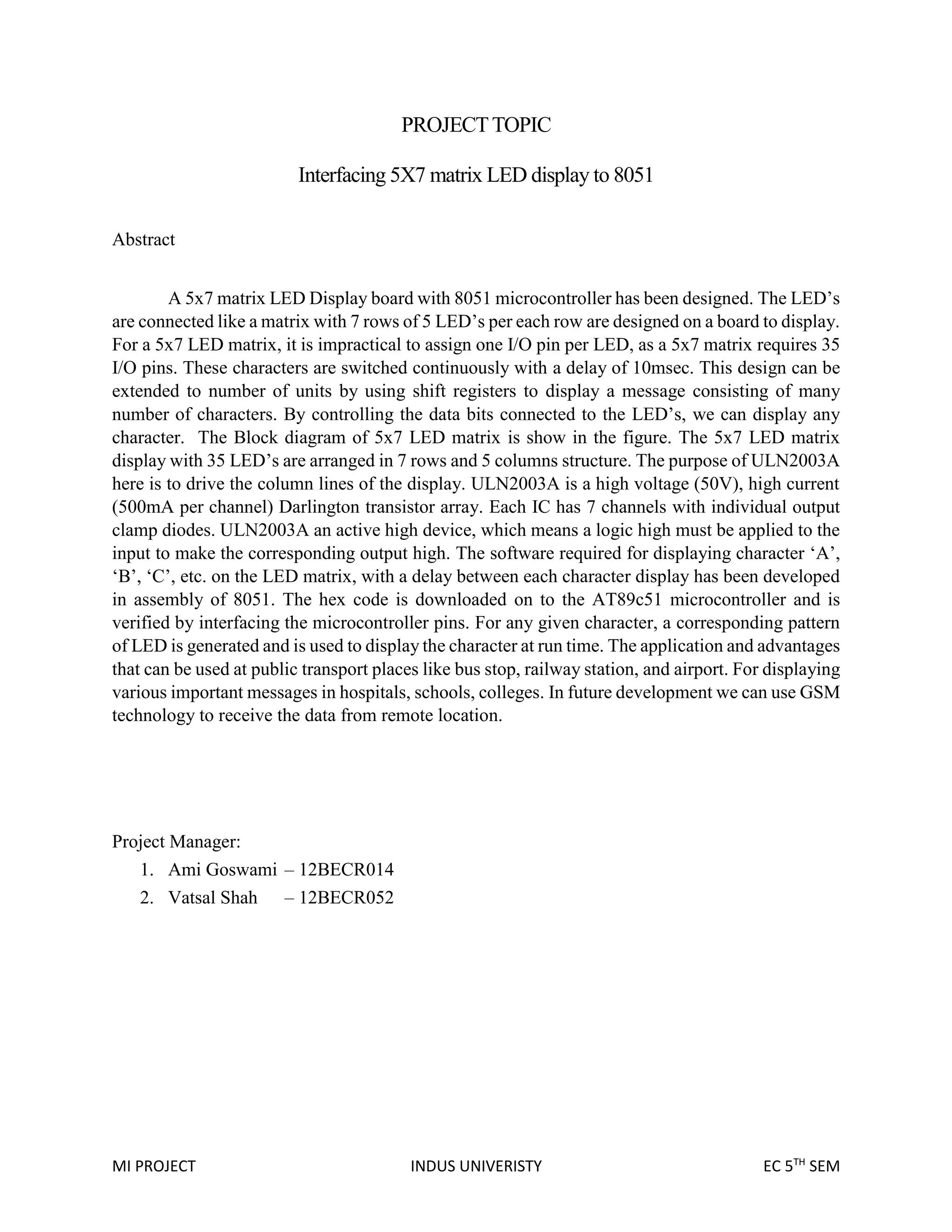 Abstract - Interfacing 5 x7 matrix led display to 8051 | PDF