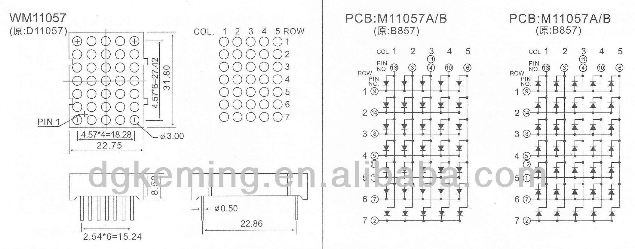 Led Matrix 5x7 Display Green Circuit Datasheet Diagram Dimensions ...