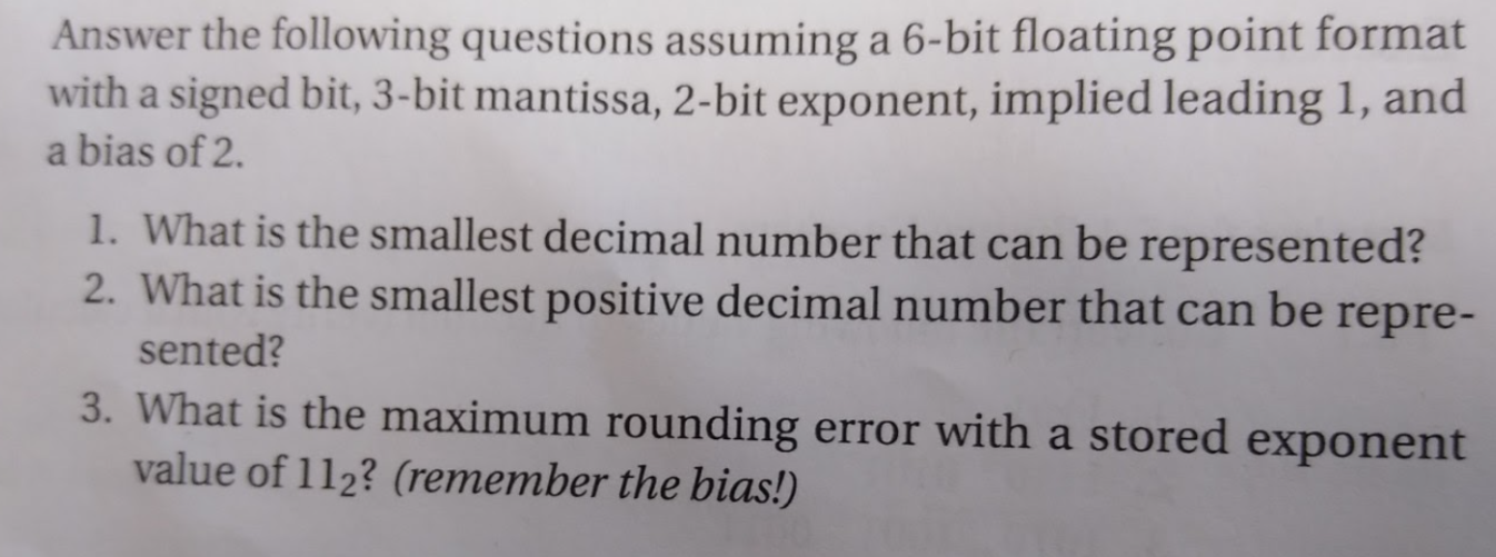 Solved A floating point architecture has 6 bits of exponent, | Chegg.com