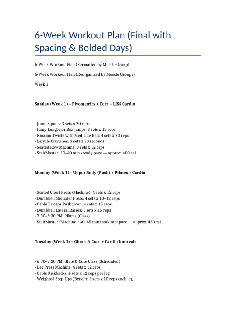 6 Week Fitness Plan Template - Google Docs, Word, Apple Pages, PDF ...