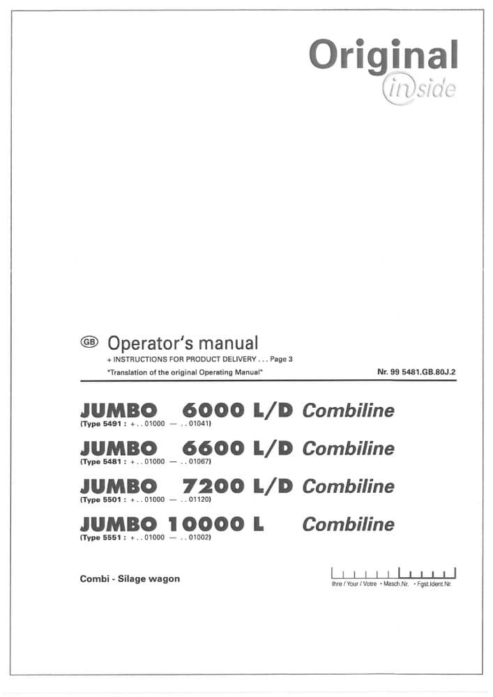 Pottinger Loader Wagon Jumbo 6000 6600 7200 8000 Profiline Operators Manual