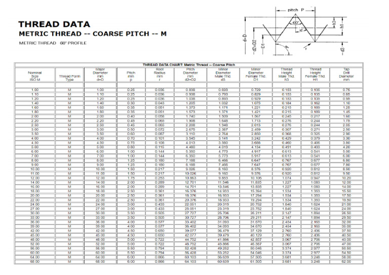 Standard Metric Fine Thread Sizes Chart Pdf - Infoupdate.org
