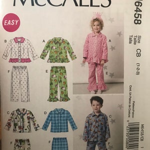 Mccalls 6458 Boys and Girls Pajama Pattern Size 1-2-3 and 4-5-6 - Etsy