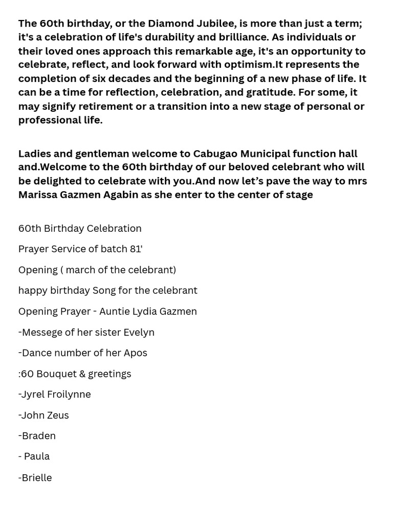 60th Birthday Celebration Script | PDF