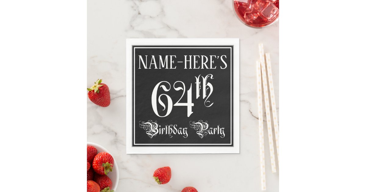 64th Birthday Party — Fancy Script + Custom Name Napkins | Zazzle