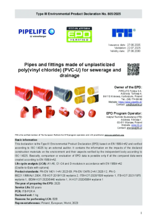 805/2025 Pipes and fittings made of unplasticized poly(vinyl chloride ...