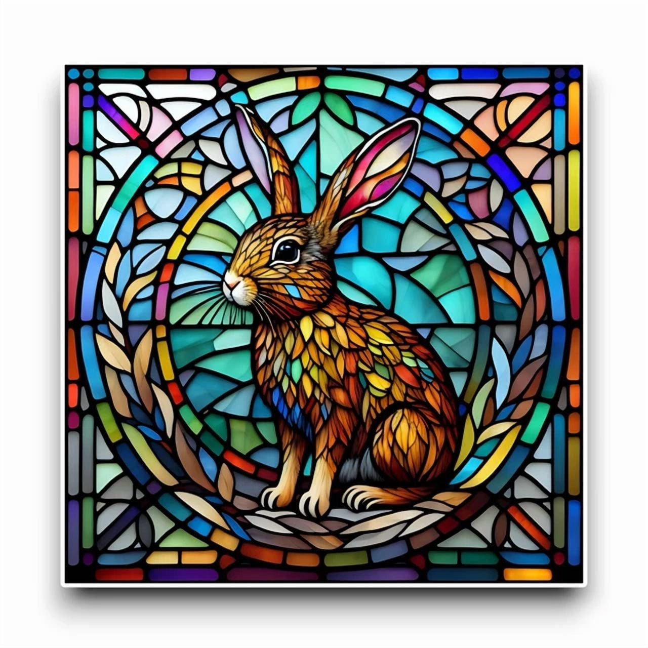 DOPASTICKER Cute Rabbit Animal Square Stained Glass Style Window ...